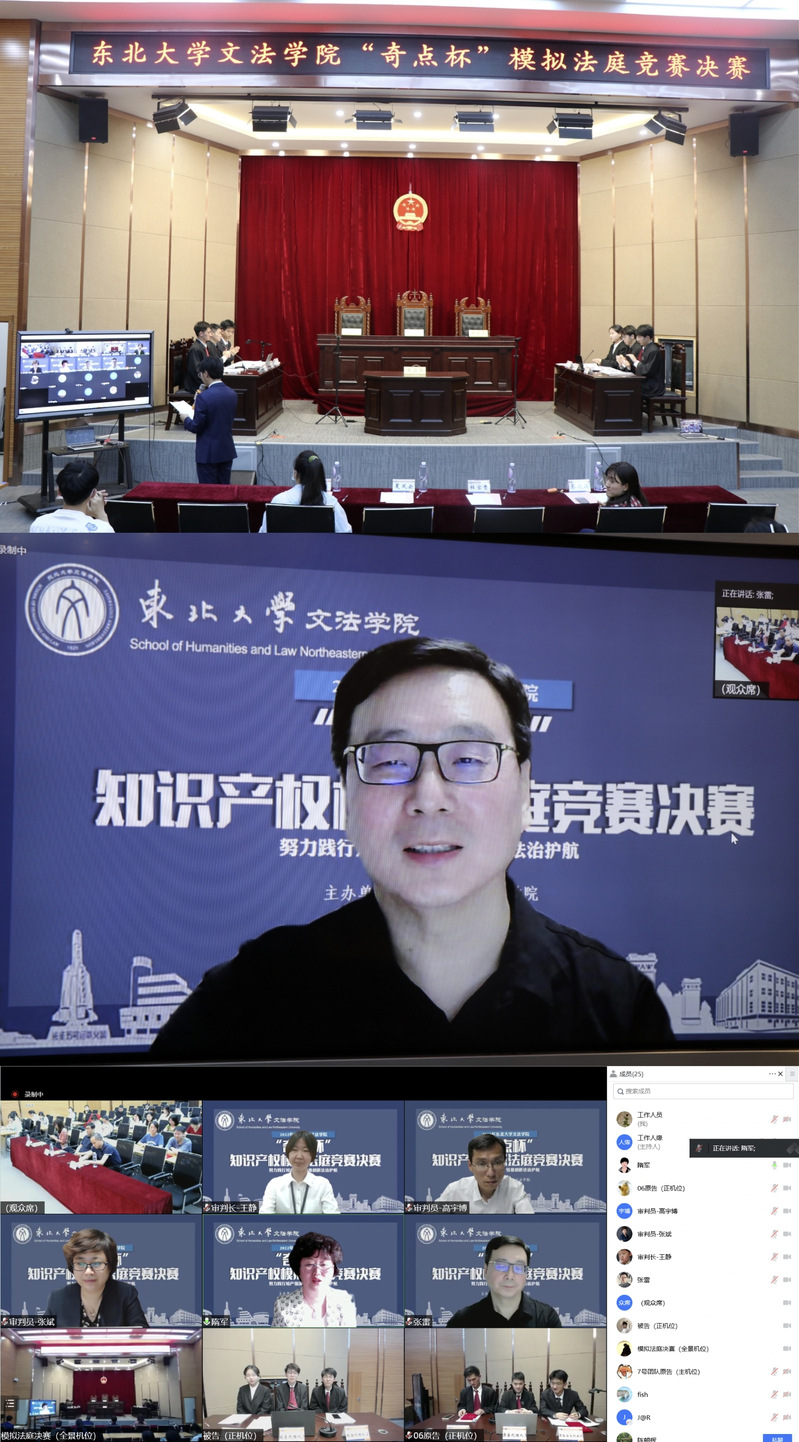 法学校友会校友、沈阳市皇姑区人民法院法官王静,法学校友会校友、北京立方律师事务所高级合伙人张斌,法学校友会校友、辽苏知识产权网创始人、辽宁省中高知识产权运营有限公司总经理高宇博组成合议庭,王静法官担任审判长,张斌、高宇博担任审判员。经过本次决赛的激烈的角逐,由赵进华老师指导的第六组(成员:熊林俊、程天骏、郭星宇、陈瑞彬)获得冠军,由杨丰一老师指导的第一组(成员:丰雷激、于子邱、许博文、郑非凡)获得亚军,许博文、熊林俊两名同学获得最佳辩手,赵进华获得最佳指导教师。